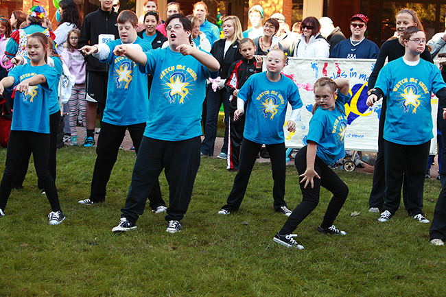 Yesterday we had our Step Up For Down Syndrome 5K and Festival. Sarah and Caroline danced with Miracles in Motion during the festivities. They were pretty excited about dancing and especially excited about their new shirts and shoes that they had to wear. There were clowns, face painting, hoola-hoops, a jump rope team, musicians and several other activities. It was a little cool but still a lot of fun.