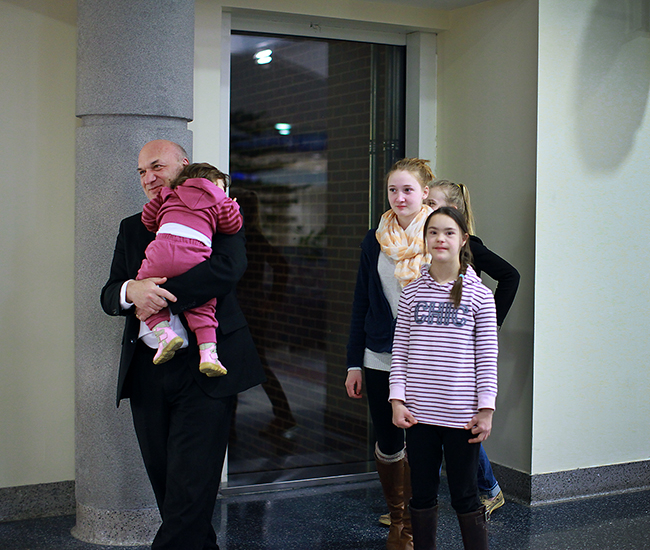 Everyone was crowded around and we were starting to block other people so before we could get them out of the stroller we had to move out of everyone’s way. Then everyone finally got to hold our girls. Since the escort’s son-in-law was late arriving to pick her up, we stayed with her at the airport and just took turns holding the girls and just enjoying the moment.