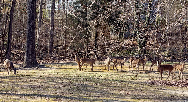 This morning one of the kids told me to look in our back yard and this is what I saw. There were ten of them all together. Amazing! We live in the city and have deer in our yard just about every single day — but, not usually ten.