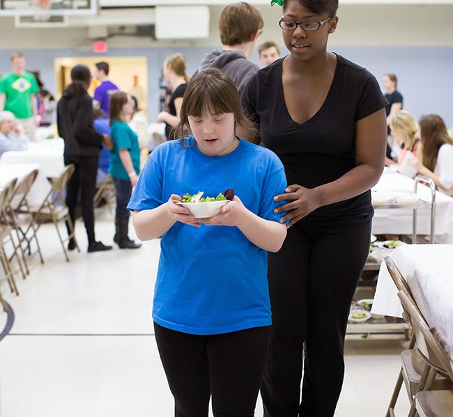 On Saturday, Sarah, Caroline and Claire served dinner at a Miracles In Motion fund raiser. My girls had a great time and it was a lot of fun. I took some pictures, but there was florescent lighting and that makes for poor color balance and some not so good pictures. But, I still got a few good pictures of the kids. This has been such a great group for my kids to be a part of and I am so thankful they have this opportunity.