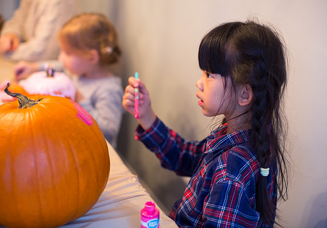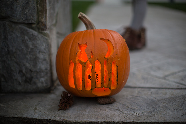 We had our pumpkin carving and some carved and some painted. Tess was probably the most excited and she carved — and did a very good job for her very first time.