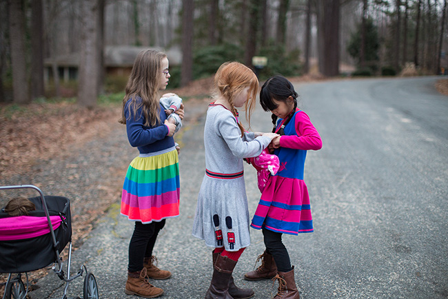 Today was quiet. We went to church and then pretty much did nothing, though Bill did get the Christmas tree out of the house. The rest of the day the kids just played and then decided they wanted to take their dolls for a walk around the neighborhood. So, we walked and walked till it was getting dark.