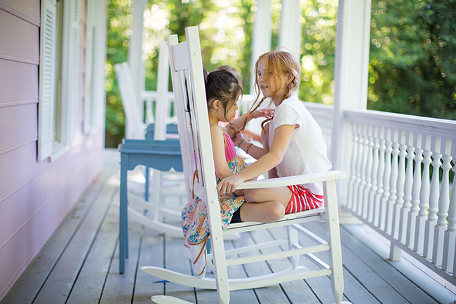 Sophia has gotten a little more social lately – and I mean just a little. But, she does really like sitting on the porch in the rocking chair. Every few minutes one of the kids will go up and play with her or talk to her.