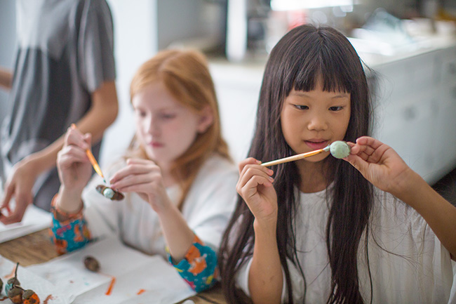 Meant to get a picture of them in the jar but forgot. They look pretty even though there are some that may have a little bit of several colors of paint on them – messy painters.