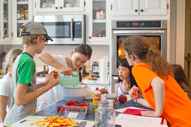Yesterday we did our cooking class again. I am thinking we will do it every Friday this fall. We made Berry Fruit Pizza and it was a hit with every kid except Sarah – who wouldn’t even taste it. But, she is like that. They all said it was delicious and gave it a 10 out of 10. Bethany said she didn’t think we would make anything else this fall that would be nearly as good.
