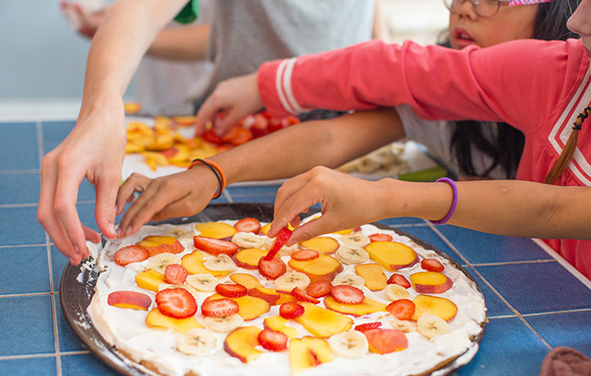 It was simple to make and had bananas, peaches, strawberries and blackberries on it. It actually looked really pretty before we put it in the oven.