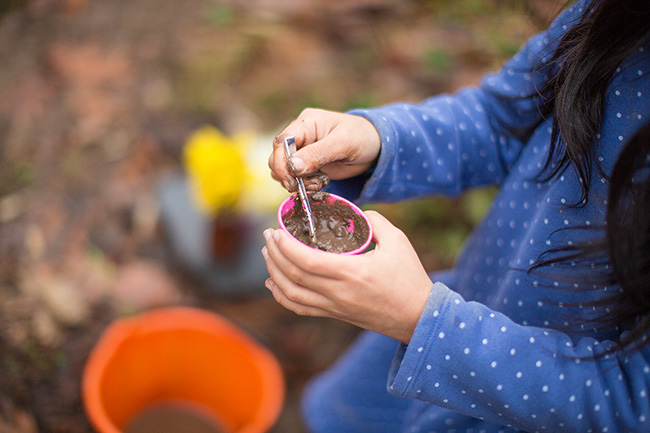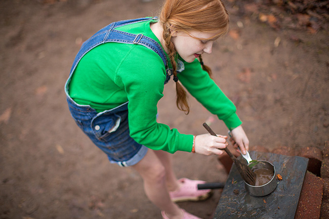 Today was a rainy, messy day. Bethany asked to go out to play in her kitchen and I said it was too wet and messy, but she reminded me that wet and messy was the best time to make mud pies. So, she and Tess went out in their kitchen and played for a couple of hours.
