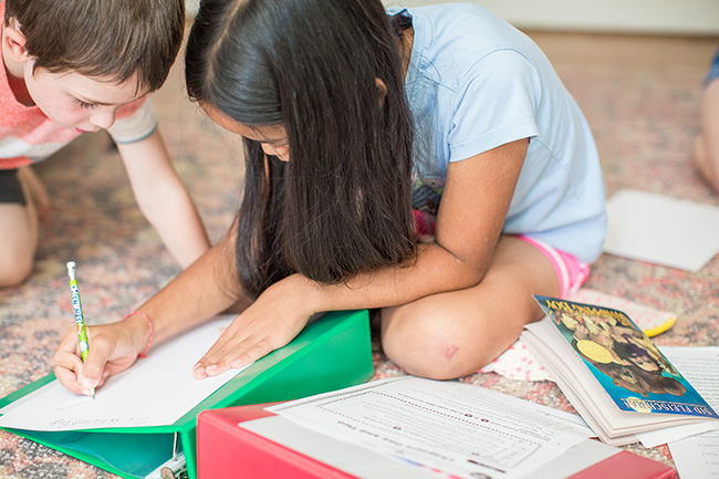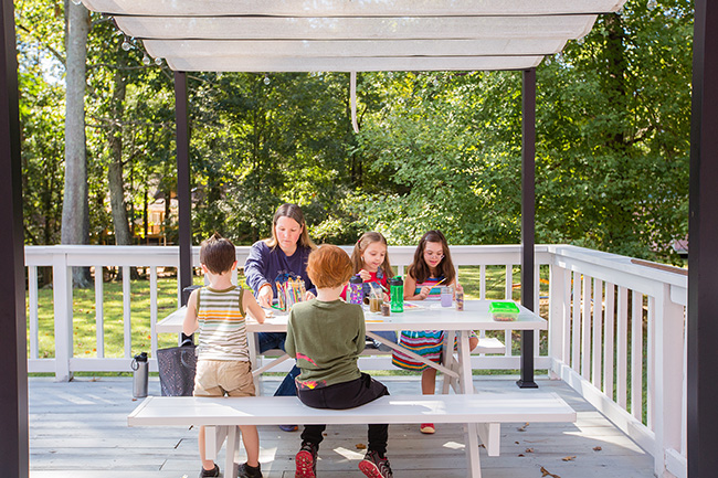 I snapped this last picture from the kitchen window. It is the kids out on the deck working on a nature study they do three times a week. They were having so much fun. The kids are all cousins except for Bella and she is the aunt.