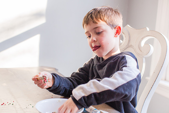 Today our special thing was to dip pretzels and then add sprinkles. We had pretzel rods and melted chocolate and vanilla melting wafers then dipped the pretzels in the melted chocolate and vanilla. Then we added sprinkles. The kids did love this, but it was so messy. We had sprinkles and mess all over the place. But, they tasted good and it was fun so another day down in our Christmas count down.