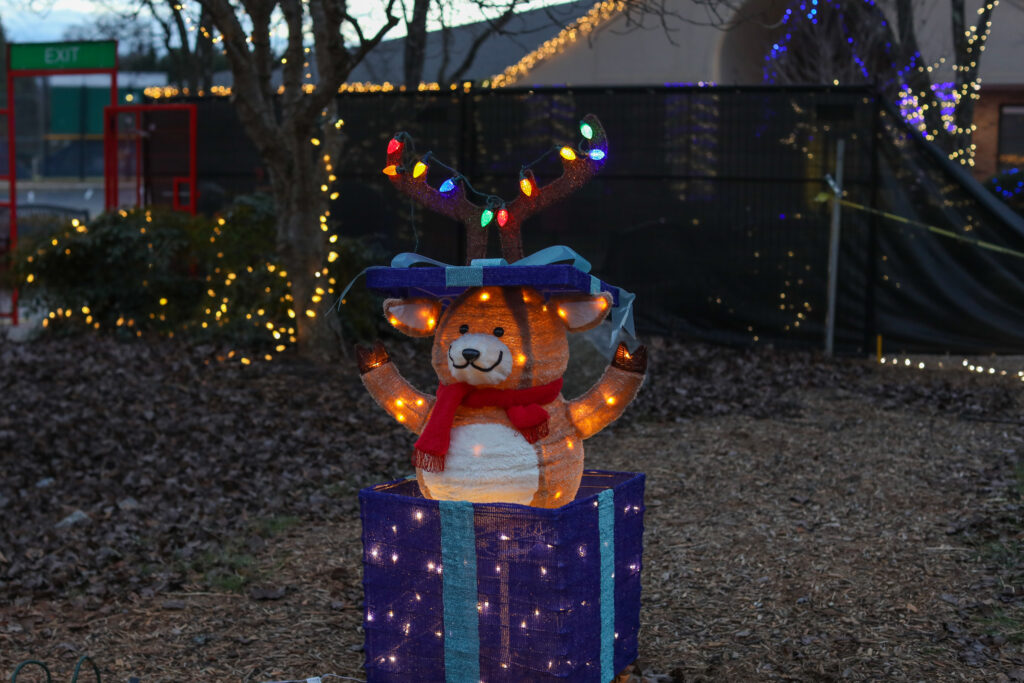 After lunch, bracelet making and a trip out to get a sleigh to put some of our Christmas books in it was getting a little dusky and colder. We decided to go look at the lights even though it wasn’t dark yet, as we didn’t want to be out as it got colder. It was nice. There were enough lights to be enjoyable and a few new things out this year. After we walked as much as we wanted, we came home and they all used their McDonald’s gift cards they got from their Sunday school teacher today and had that for dinner. It was a nice evening and I didn’t have to make any dinner.